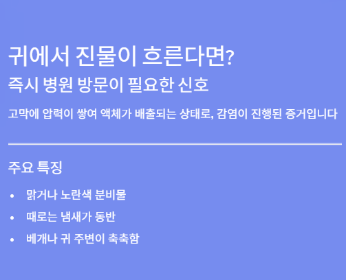 2. 귀에서 진물이나 액체가 흐르면 바로 병원에 가야 할까요?