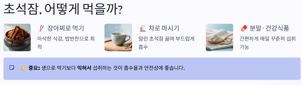👉 중요한 점: 생으로 먹기보다는 익혀서 섭취하는 것이 좋습니다.