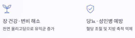 이 성분은 장내 유익균을 증가시켜 장 환경을 개선하고 변비를 완화하는 데 도움을 줍니다.