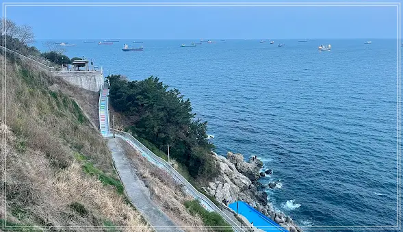 이어서 해돋이전망대에 오르면 부산항과 남항대교가 시원하게 펼쳐져요. 바람맞으며 걷기 딱 좋은 산책 코스예요.