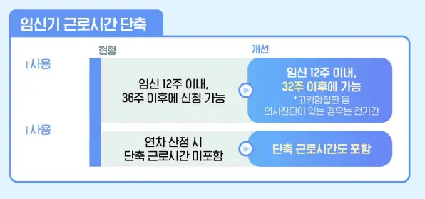 - 조기진통, 다태아 임신 등 고위험 임산부는 근로시간 단축 가능