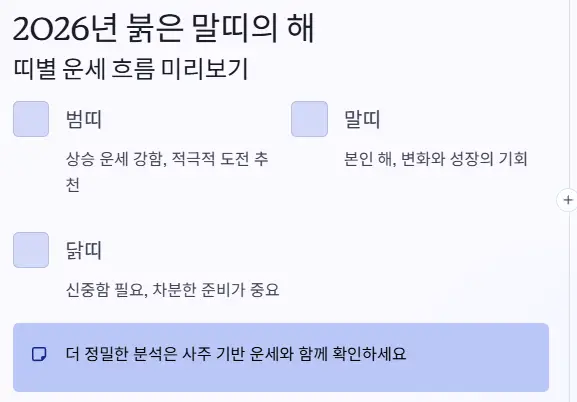 띠별 운세는 대부분 간략히 요약되므로, 보다 정밀하게 보려면 사주 기반 운세와 함께 보는 걸 추천해요.