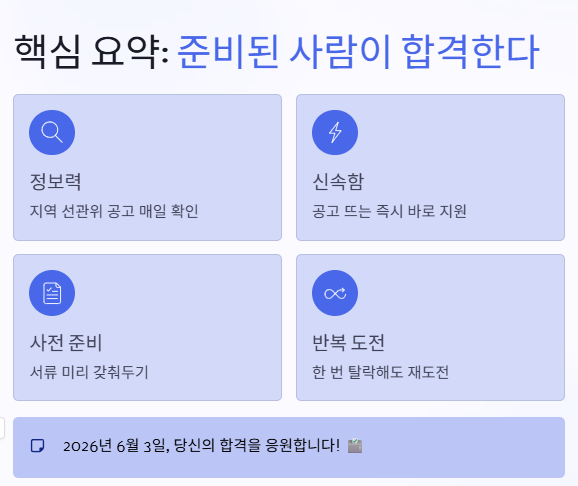 이 글에서 제시된 전략들을 바탕으로 철저히 준비한다면, 다음 2026 지방선거에서는 분명히 합격의 기회를 잡을 수 있을 겁니다.