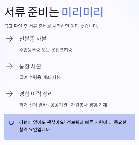 빠른 지원만큼 중요한 게 바로 서류 준비잖아요. 공고를 확인한 후에 서류를 준비하기 시작하면 이미 늦는 경우가 대부분인 거죠.