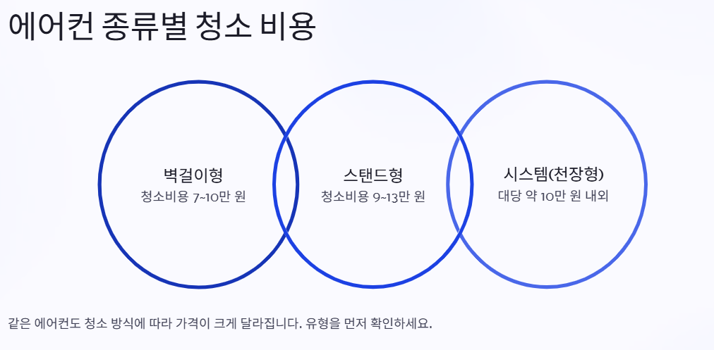 에어컨 청소비용은 단순히 “얼마다”라고 딱 잘라 말하기 어렵습니다. 왜냐하면 기기 종류, 청소 방식, 오염 정도에 따라 가격이 크게 달라지기 때문입니다.