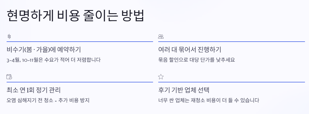 가격이 너무 저렴한 업체는 오히려 재청소 비용이 발생할 수 있습니다.