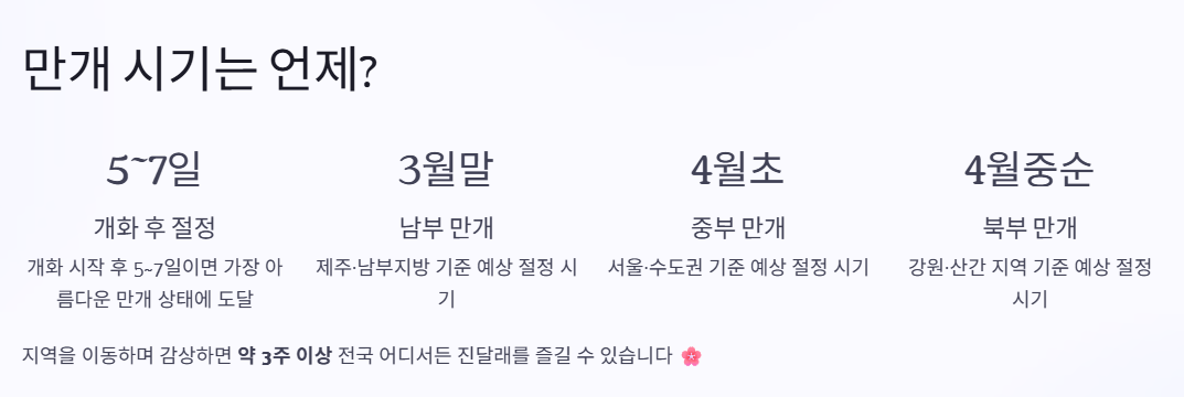 지역별 진달래 개화시기 (2026 기준)