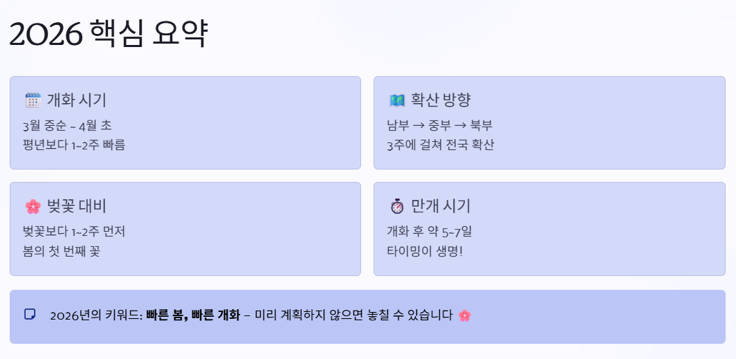 특히 2026년은 기온 상승 영향으로 개화 시기가 다소 앞당겨질 것으로 예상되며, 봄 여행 계획에도 중요한 기준이 되고 있습니다.