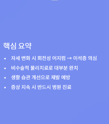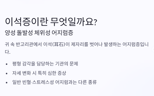 이석증은 한 번 생기고 끝나는 병이 아니라는 점도 유의해야 해요. 체질에 따라 재발이 쉬운 경우도 있고, 평소 생활습관이 영향을 줄 수 있어요.
