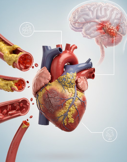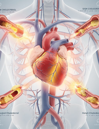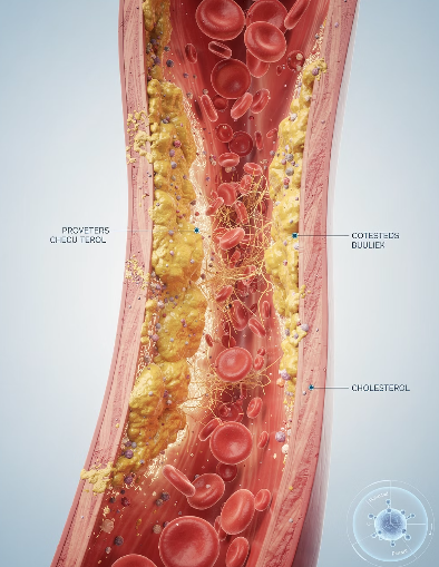 심장은 혈액을 전신으로 보내는 펌프 역할을 하는데, 콜레스테롤로 혈관이 막히면 이 펌프가 원활하게 작동하지 않게 됩니다.