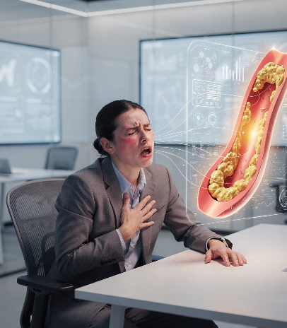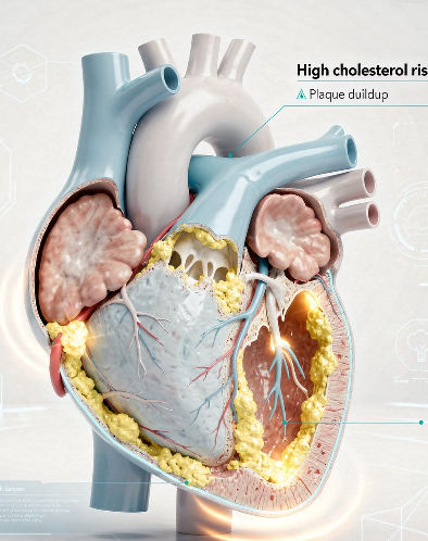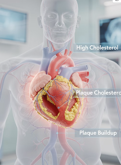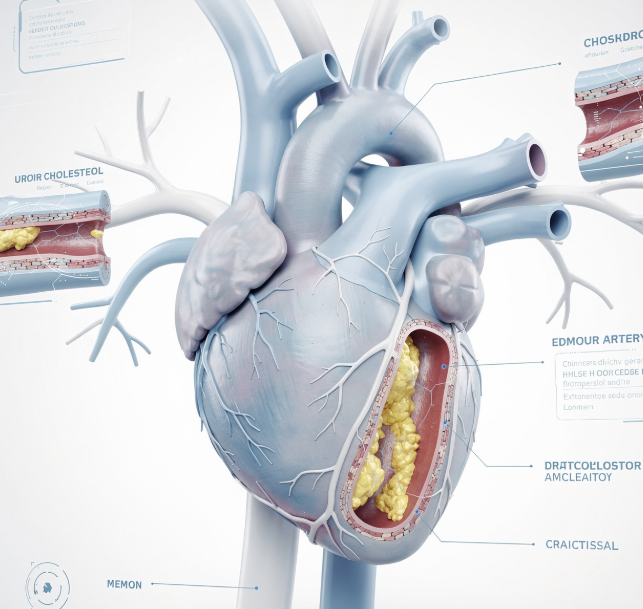 심장은 혈액을 전신으로 보내는 펌프 역할을 하는데, 콜레스테롤로 혈관이 막히면 이 펌프가 원활하게 작동하지 않게 됩니다.
