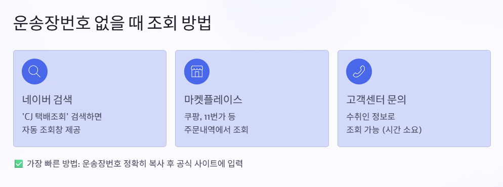 • 네이버 ‘CJ 택배조회’ 검색 → 자동 조회창 제공