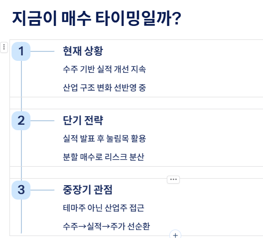 현재 가격대가 부담된다면 분할 매수나 실적 발표 이후의 눌림목 구간을 고려해 보는 것도 방법입니다. 무엇보다, ‘테마주’가 아니라 ‘산업주’로 접근한다면 중장기 투자 전략이 더 명확해질 수 있습니다.