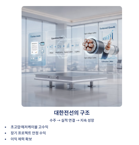 대한전선은 단순한 전선 판매가 아닌, 설계·생산·시공까지 연결된 프로젝트형 수주가 핵심입니다. 이 방식은 단순 납품보다 단가도 높고, 마진도 큽니다.