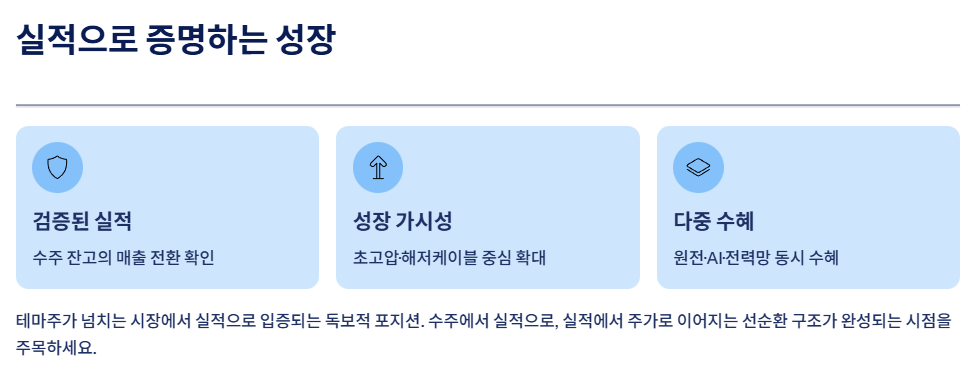 특히 초고압, 해저케이블 등 고부가가치 분야의 성장이 확인되고 있는 지금, 수주 → 실적 → 주가라는 선순환 구조가 완성될 수 있을지 지켜볼 시점입니다.