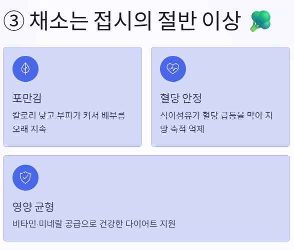 3. 채소는 식단의 절반 이상