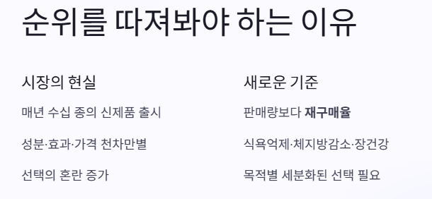 1. 다이어트 보조제, 왜 순위를 따져야 할까?