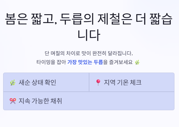 🌿 결론: 두릅 채취시기의 핵심 한 줄 정리