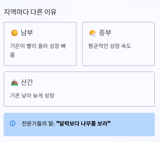 - 남부지역 → 기온이 빨리 올라가 빠르게 성장