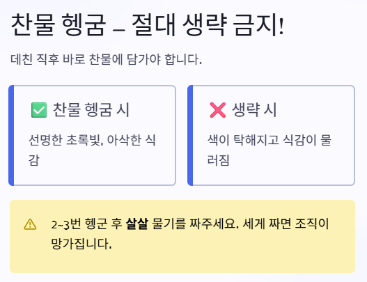 데친 후 찬물 처리, 맛을 좌우하는 결정적 단계