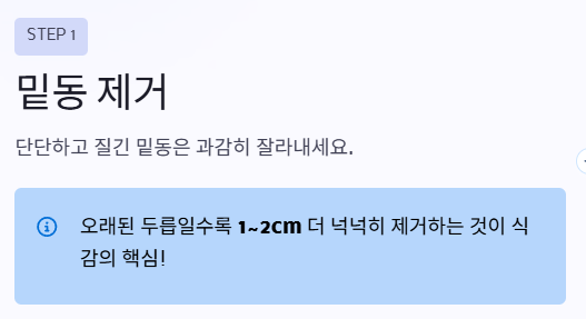 밑동 먼저 → 총 1분 이내 → 찬물 헹굼