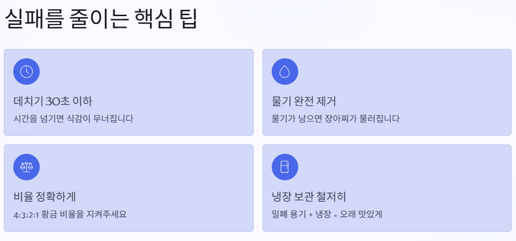 두릅 장아찌를 실패 없이 만들기 위한 핵심 포인트는 다음과 같습니다.