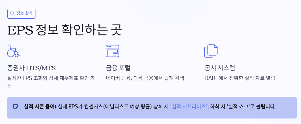 EPS는 증권사 HTS(MTS), 금융 포털 사이트, 기업 공시 자료 등에서 쉽게 확인할 수 있어요. 대표적인 사이트는 네이버 금융, 다음 금융, DART(전자공시시스템) 등이 있습니다.