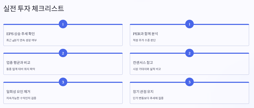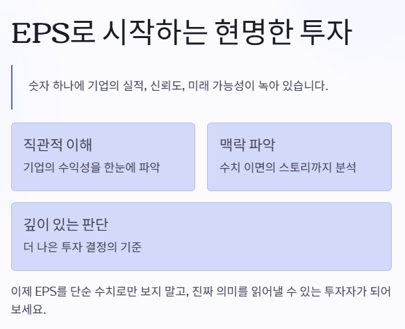 이제 EPS를 단순 수치로만 보지 말고, 그 이면에 담긴 맥락까지 읽어낼 수 있다면, 투자 판단에 훨씬 더 깊이 있는 기준을 가질 수 있을 거예요.