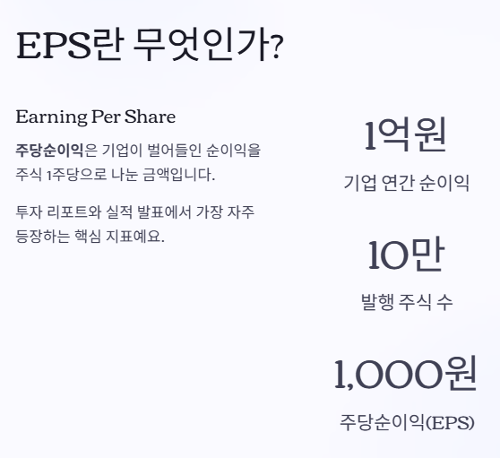 투자 리포트나 실적 발표 자료를 보다 보면 “EPS 증가”나 “EPS 컨센서스 상회” 같은 표현을 자주 보게 되는데요, 그만큼 EPS는 기업의 ‘실질적인 수익성’을 간결하게 보여주는 지표입니다.