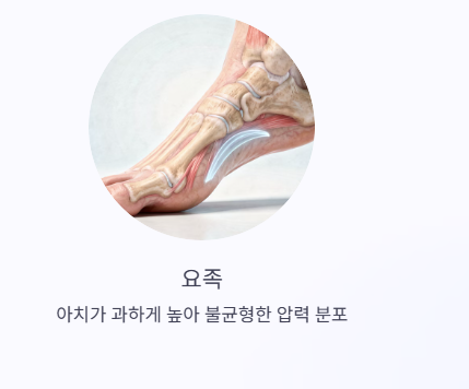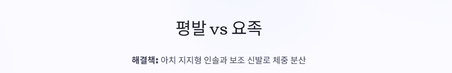발의 구조 자체가 통증을 유발할 수도 있어요. 평발(아치가 거의 없는 형태)이나 요족(아치가 과하게 높은 형태)은 발바닥에 가해지는 압력 분포가 불균형해져 통증을 일으킬 수 있죠. 특히 아치가 무너지면서 발 안쪽이 과하게 눌리거나, 발뒤꿈치 쪽에 불균형이 생기면 장시간 걸을수록 통증이 심해져요.