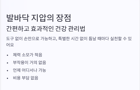 발바닥 지압의 장점은 간단해요. 도구 없이 손만으로도 가능하고, 특별한 시간 없이 틈날 때마다 할 수 있다는 것. 또한 체력 소모도 적고 부작용이 거의 없다는 것도 장점이에요. 하지만 주의할 점도 있어요.