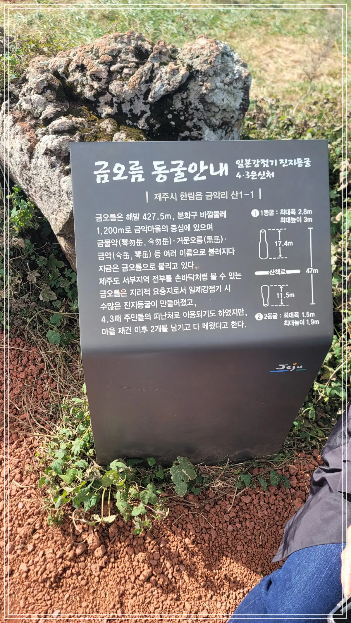 안내판에 보면 ‘검을 금(禁)’ 자와 ‘바위 악(岳)’ 자를 써서 금악, 또는 금오름이라고 부른다고 나와 있어요. 예전부터 신성하게 여겨졌던 오름이라고 하는데요, 금기하거나 신령한 의미가 담겨 있다고 하더라고요.