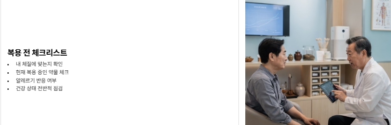 한약 복용이 처음이라면 병원 상담 후 시작하는 것을 추천드리고요, 약의 성질이 몸에 맞는지도 체크하는 게 중요해요.