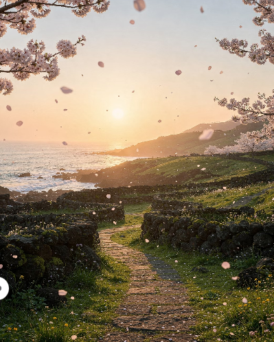 - 벚꽃과 제주 자연 풍경이 어우러진 풍경