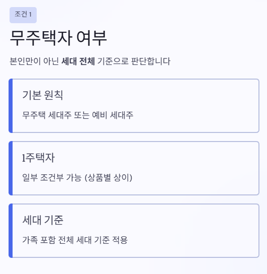 - 세대 기준으로 판단 (단독이 아닌 가족 포함)