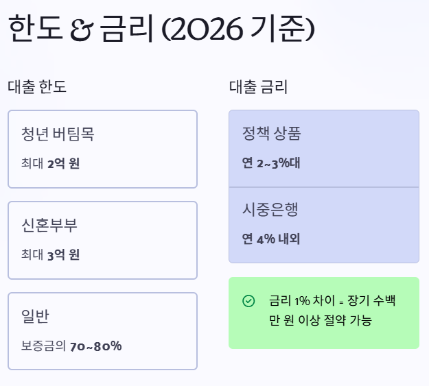 전세자금대출 한도 및 금리 (2026 기준)