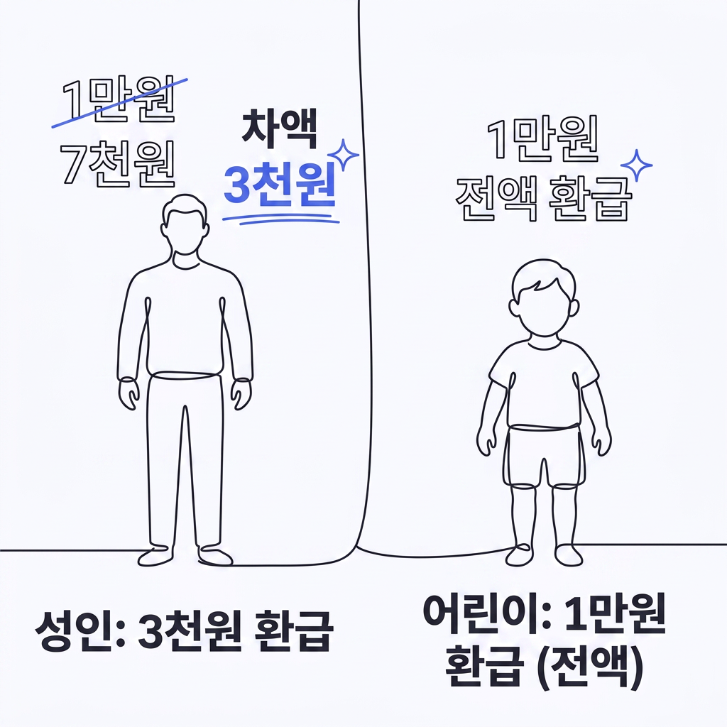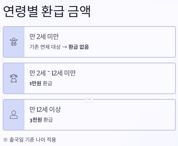 - 어린이(2~12세 미만): 기존 면제 대상 확대 영향으로 전액 환급