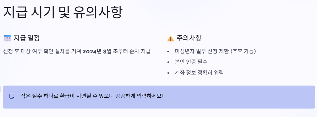 환급 신청을 완료했다고 해서 바로 입금되는 것은 아닙니다. 신청 후에는 환급 대상 여부 확인 절차를 거치며, 이후 순차적으로 지급됩니다. 보도자료에 따르면 환급금은 2024년 8월 초부터 지급이 시작될 예정입니다.