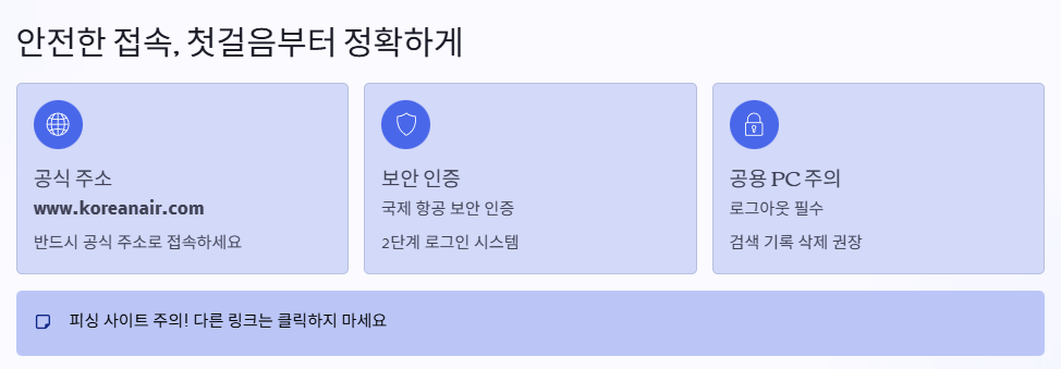 이 주소 외의 링크는 피싱이나 사칭 사이트일 수 있으니 주의가 필요해요. 또한 대한항공은 국제 항공 보안 인증을 갖추고 있고, 2단계 로그인 인증 시스템도 지원합니다. 공용 PC에서는 반드시 로그아웃과 기록 삭제까지 잊지 말아야 합니다.
