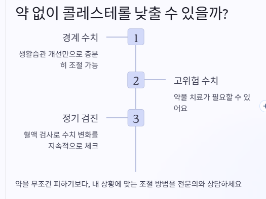 의학적으로 콜레스테롤 수치가 너무 높은 경우 약물 치료가 불가피할 수 있어요. 하지만 경계 수치에 있다면 식습관과 생활습관 개선만으로도 충분히 조절이 가능해요.