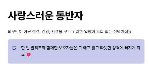 장기적으로 함께 지낼 생각이라면, 가족 구성원 모두가 말티즈의 성격을 이해하고, 함께 책임질 준비가 되어 있어야 해요. 입양 전에는 말티즈에 대한 정보를 충분히 조사하고, 가능하다면 보호소나 위탁처에서 직접 만나보고 결정하는 걸 추천드려요.