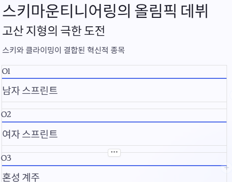 밀라노-코르티나 2026의 또 다른 핵심 키워드는 신규 종목 도입입니다. 특히 스키마운티니어링이 올림픽 무대에 첫선을 보입니다. 이 종목은 고산 지형을 배경으로 스키와 클라이밍 요소가 결합된 경기로, 남자·여자 스프린트혼성 계주가 포함됩니다.