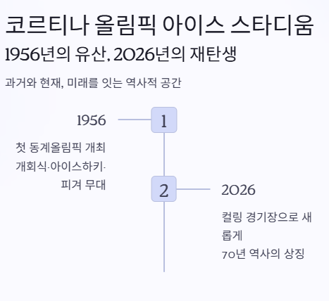 특히 컬링 경기가 열리는 코르티나 올림픽 아이스 스타디움은 1956년 동계올림픽의 유산으로, 그때의 개회식과 아이스하키, 피겨스케이팅이 열렸던 역사의 공간입니다. 이번 2026 대회에서 과거와 현재, 미래를 잇는 상징적인 장소로 다시 조명받고 있습니다.