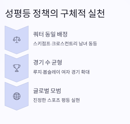 이번 동계올림픽은 여성 스포츠의 진보를 상징합니다. IOC는 성평등을 적극 반영해 스키점프와 크로스컨트리 종목에서 남녀 쿼터를 동일하게 배정했으며, 루지와 봅슬레이에서도 여자 쿼터와 경기 수를 남성과 동일하게 조정했습니다.