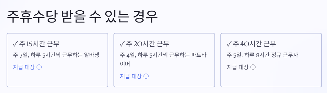 간혹 주 15시간 미만 근무자들은 주휴수당 지급 대상이 아니라고 오해하시기도 해요. 하지만 정확히 말하면, 주 15시간 이상 근무자부터 주휴수당 지급 요건이 생깁니다.