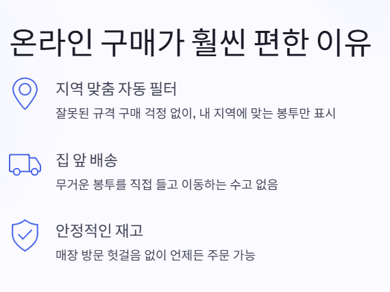 또한 집에서 주문하고 배송을 받는 구조이기 때문에, 무거운 봉투를 직접 들고 이동해야 하는 부담도 줄어듭니다.