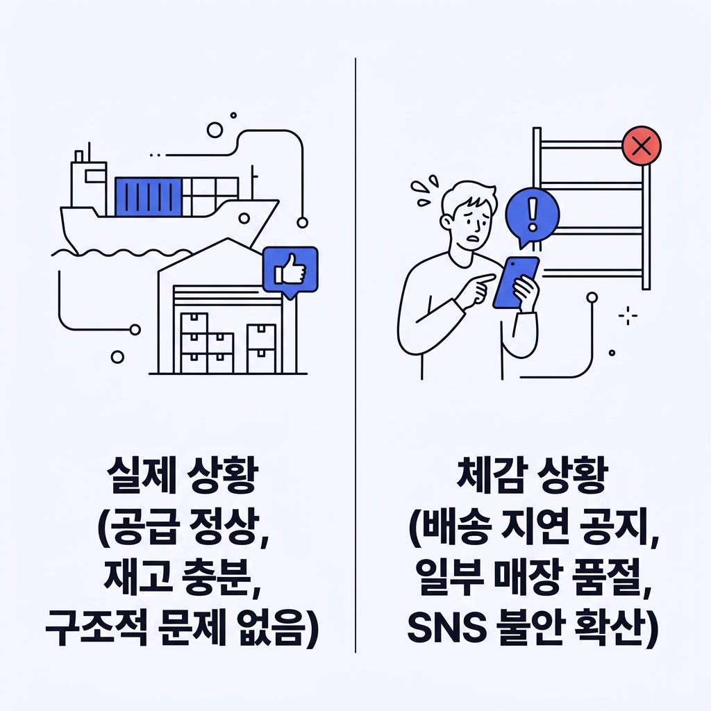 다만 중요한 점은 공급 자체에 문제가 생긴 것은 아니라는 사실입니다. 재고는 충분하다는 입장이 유지되고 있으며, 현재 상황은 심리적인 요인이 크게 작용한 흐름에 가깝습니다.