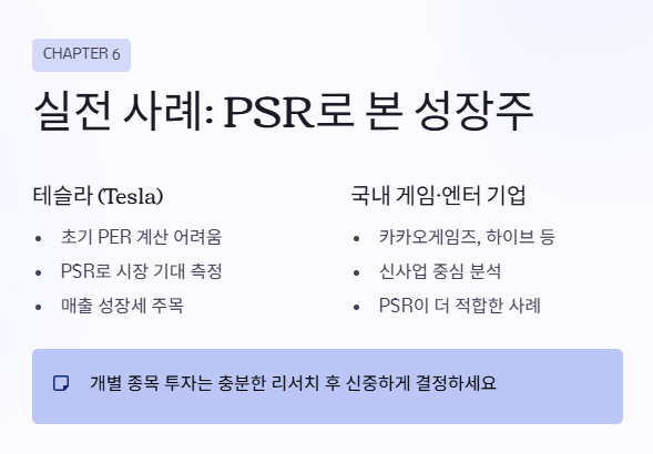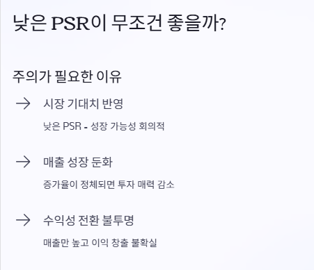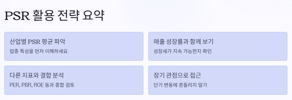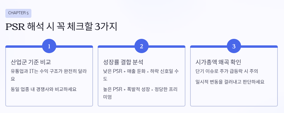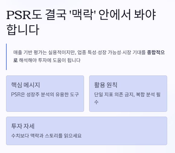 결국 PSR은 참고 지표일 뿐, 종합적으로 봐야 한다는 점 잊지 마세요.