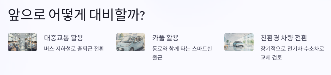 따라서 단순히 규제를 피하는 수준을 넘어, 생활 패턴 자체를 조금씩 바꾸는 것이 중요합니다. 예를 들어 대중교통 이용을 늘리거나 카풀을 활용하는 방법, 혹은 장기적으로 친환경 차량으로 전환하는 것도 현실적인 대안이 될 수 있습니다.