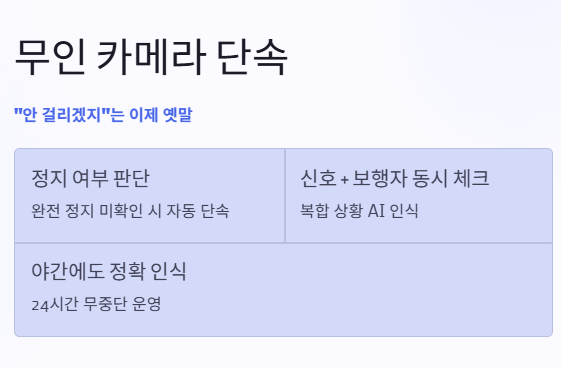 예전에는 경찰 단속 위주였다면 지금은 무인 카메라 단속이 빠르게 늘어나고 있습니다. 특징은 다음과 같습니다.